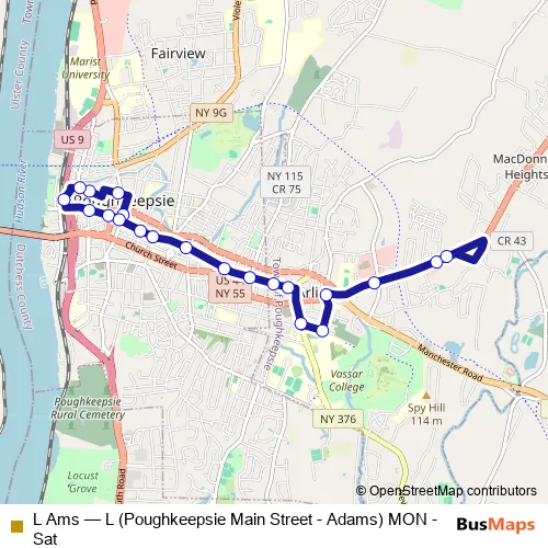 Click here to view the nearest L Ams - L (Poughkeepsie Main Street - Adams) MON - Sat bus stop.