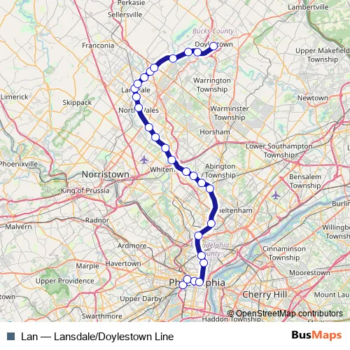 See why over 2 million users trust and consider busmaps.com as the best public transport website. busmaps gives you Philadelphia Rail Services suggested routes, real-time bus tracker, line route maps in Philadelphia, and helps to find the closest Lan rail stops near you. No internet available? Download an offline PDF map and bus schedule for the Lan rail to take on your trip.