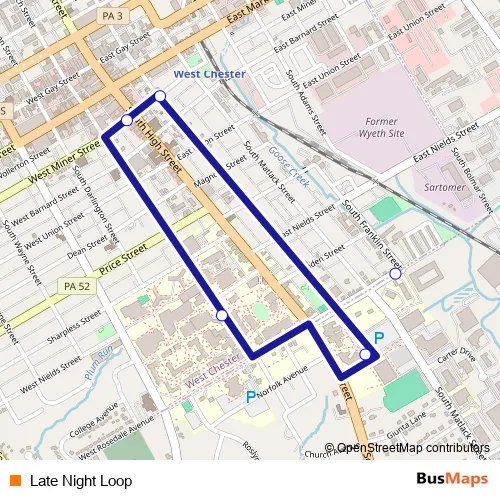 See why over 2 million users trust and consider busmaps.com as the best public transport website. busmaps gives you West Chester Buses suggested routes, real-time bus tracker, line route maps in West Chester, and helps to find the closest Late Night Loop bus stops near you. No internet available? Download an offline PDF map and bus schedule for the Late Night Loop bus to take on your trip.