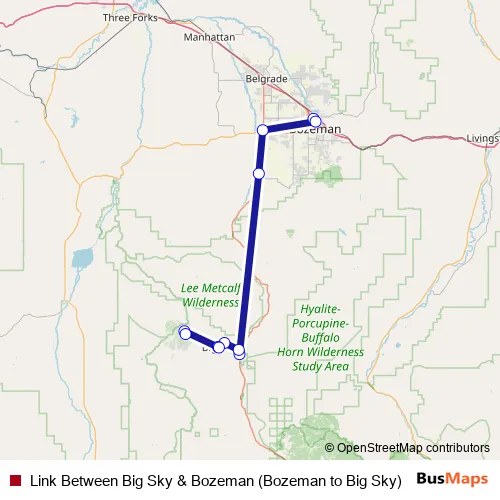 Additional information: Link Between Big Sky & Bozeman (Bozeman to Big Sky) has 11 stops and the total trip duration