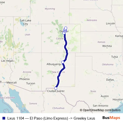 Click here to view the nearest Lxus 1104 - El Paso (Limo Express) -> Greeley Lxus bus stop.