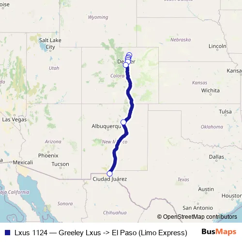 Bus Lxus 1124 - Greeley Lxus -> El Paso (Limo Express) in Greeley: Stops & Timetable