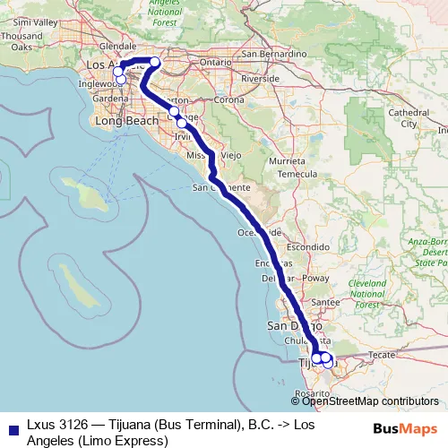 Bus Lxus 3126 - Tijuana (Bus Terminal), B.C. -> Los Angeles (Limo Express): Full Schedule in Tijuana