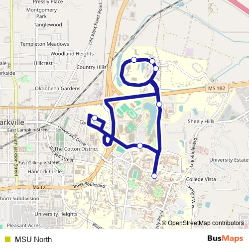 See why over 2 million users trust and consider busmaps.com as the best public transport website. busmaps gives you Starkville Buses suggested routes, real-time bus tracker, line route maps in Starkville, and helps to find the closest MSU North bus stops near you. No internet available? Download an offline PDF map and bus schedule for the MSU North bus to take on your trip.