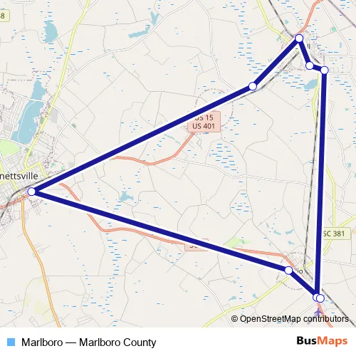 See why over 2 million users trust and consider busmaps.com as the best public transport website. busmaps gives you Bennettsville Buses suggested routes, real-time bus tracker, line route maps in Bennettsville, and helps to find the closest Marlboro bus stops near you. No internet available? Download an offline PDF map and bus schedule for the Marlboro bus to take on your trip.