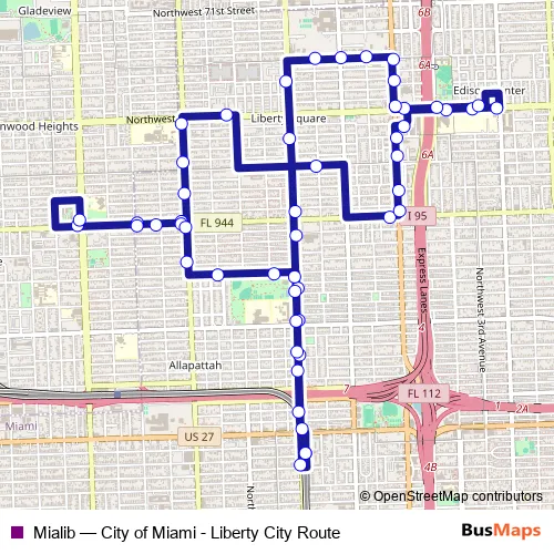 The first stop of the Mialib bus route is Allapattah Station @ 3501 NW 12 Av and the last stop is Allapattah Station @ 3501 NW 12 Av. Mialib (City of Miami - Liberty City Route) is operational during entre semana.