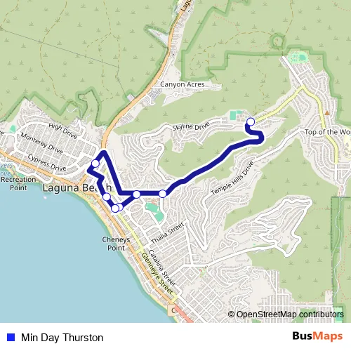 See why over 2 million users trust and consider busmaps.com as the best public transport website. busmaps gives you Laguna Beach Buses suggested routes, real-time bus tracker, line route maps in Laguna Beach, and helps to find the closest Min Day Thurston bus stops near you. No internet available? Download an offline PDF map and bus schedule for the Min Day Thurston bus to take on your trip.