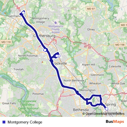 The first stop of the Montgomery College bus route is Manakee Building (Nb) and the last stop is Corp Blvd. to Rockville. Montgomery College (Montgomery College) is operational during entre semana.
