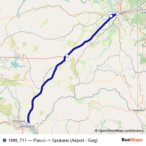 Spokane (Airport - Geg). NWL 711 (Pasco -> Spokane (Airport - Geg)) is operational during todos los días.