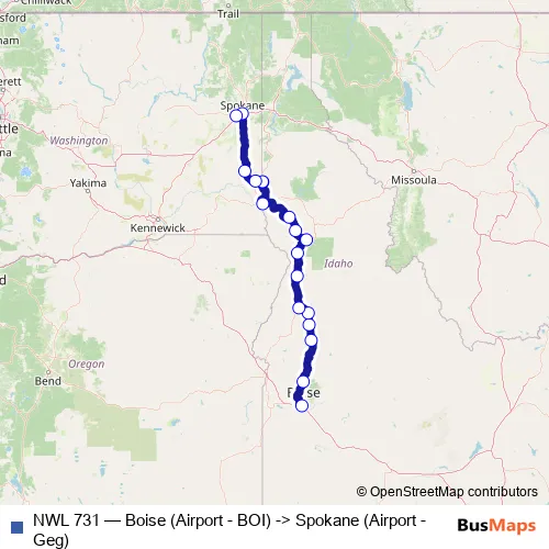 Click here to view the nearest NWL 731 - Boise (Airport - BOI) -> Spokane (Airport - Geg) bus stop.