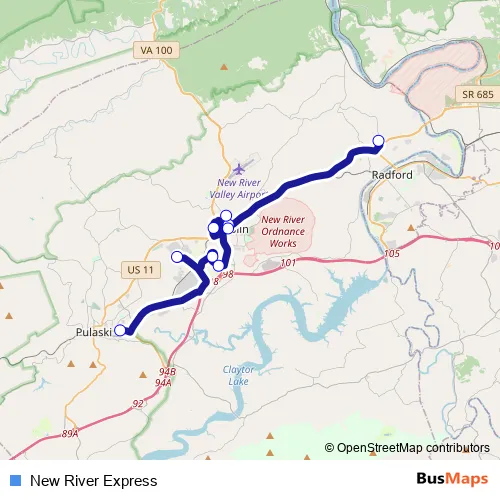 See why over 2 million users trust and consider busmaps.com as the best public transport website. busmaps gives you Pulaski Buses suggested routes, real-time bus tracker, line route maps in Pulaski, and helps to find the closest New River Express bus stops near you. No internet available? Download an offline PDF map and bus schedule for the New River Express bus to take on your trip.
