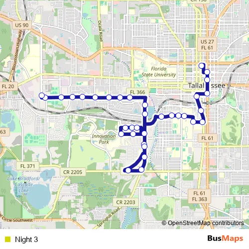Bus Night 3 in Tallahassee: Stops & Timetable