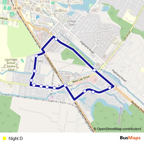 See why over 2 million users trust and consider busmaps.com as the best public transport website. busmaps gives you Baton Rouge Buses suggested routes, real-time bus tracker, line route maps in Baton Rouge, and helps to find the closest Night D bus stops near you. No internet available? Download an offline PDF map and bus schedule for the Night D bus to take on your trip.