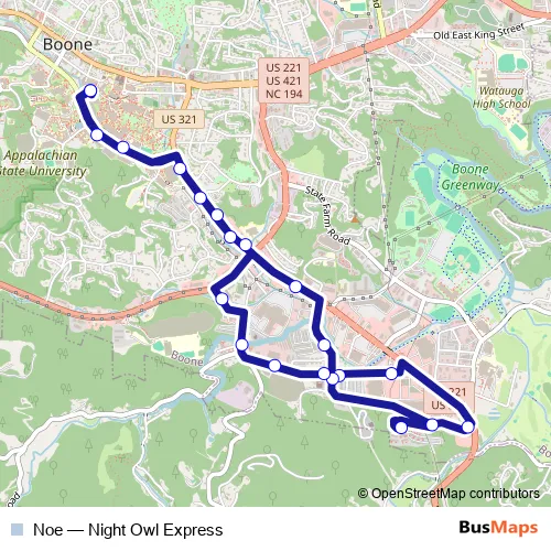 Bus Noe - Night Owl Express in Boone: Stops & Timetable