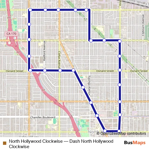 North Hollywood Clockwise bus Route Map