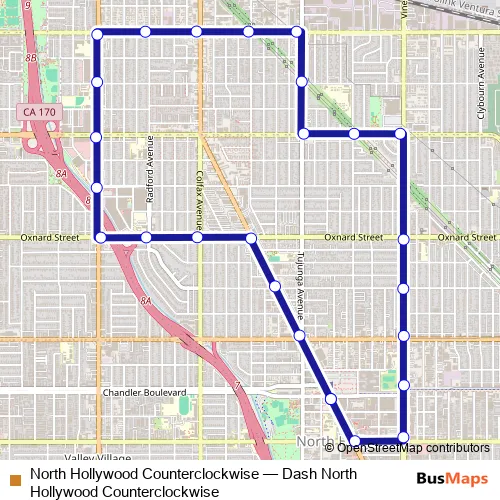 See why over 2 million users trust and consider busmaps.com as the best public transport website. busmaps gives you Los Angeles Buses suggested routes, real-time bus tracker, line route maps in Los Angeles, and helps to find the closest North Hollywood Counterclockwise bus stops near you. No internet available? Download an offline PDF map and bus schedule for the North Hollywood Counterclockwise bus to take on your trip.