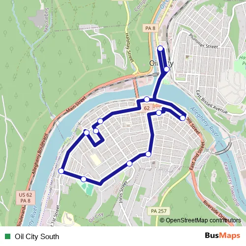 See why over 2 million users trust and consider busmaps.com as the best public transport website. busmaps gives you Franklin Buses suggested routes, real-time bus tracker, line route maps in Franklin, and helps to find the closest Oil City South bus stops near you. No internet available? Download an offline PDF map and bus schedule for the Oil City South bus to take on your trip.