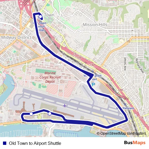 See why over 2 million users trust and consider busmaps.com as the best public transport website. busmaps gives you San Diego Buses suggested routes, real-time bus tracker, line route maps in San Diego, and helps to find the closest Old Town to Airport Shuttle bus stops near you. No internet available? Download an offline PDF map and bus schedule for the Old Town to Airport Shuttle bus to take on your trip.