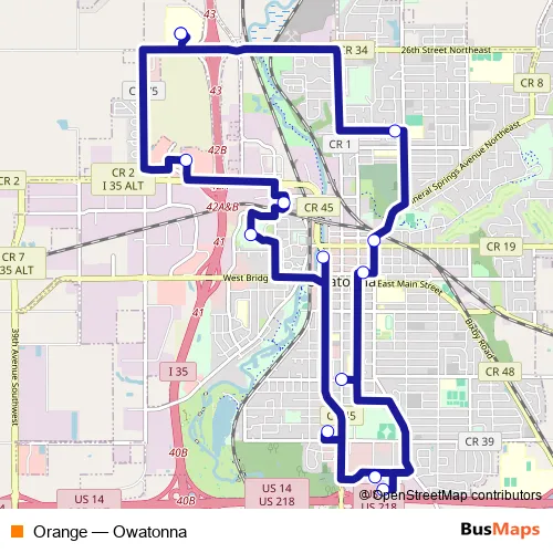 See why over 2 million users trust and consider busmaps.com as the best public transport website. busmaps gives you Owatonna Buses suggested routes, real-time bus tracker, line route maps in Owatonna, and helps to find the closest Orange bus stops near you. No internet available? Download an offline PDF map and bus schedule for the Orange bus to take on your trip.