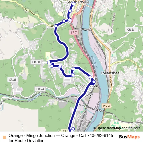 Click here to view the nearest Orange - Mingo Junction - Orange - Call 740-282-6145 for Route Deviation bus stop.