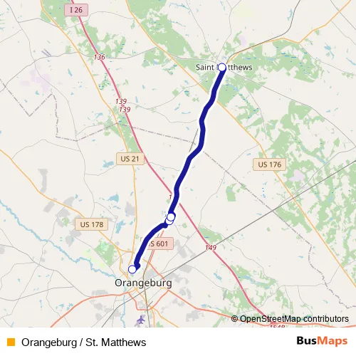 Orangeburg / St. Matthews bus Route Map