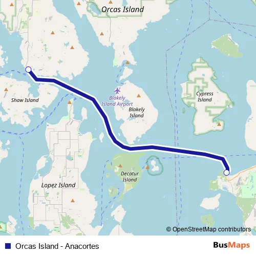Additional information: Orcas Island - Anacortes has 2 stops and the total trip duration for this route is approximately 90 minutes.