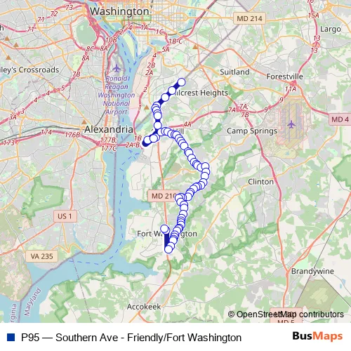 Click here to view the nearest P95 - Southern Ave - Friendly/Fort Washington bus stop.