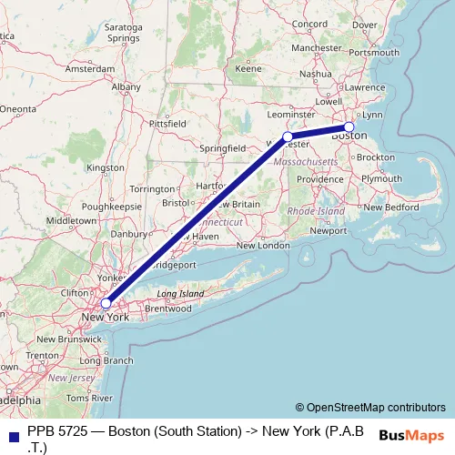 Click here to view the nearest PPB 5725 - Boston (South Station) -> New York (P.A.B.T.) bus stop.