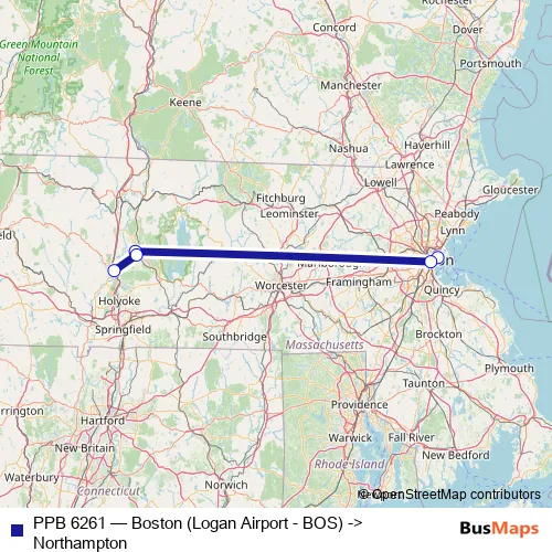 Click here to view the nearest PPB 6261 - Boston (Logan Airport - BOS) -> Northampton bus stop.