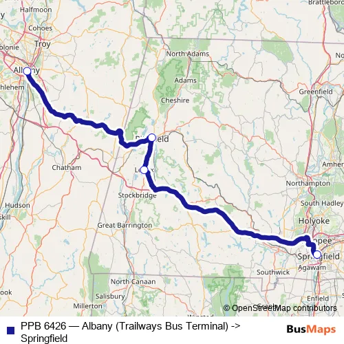 Bus PPB 6426 - Albany (Trailways Bus Terminal) -> Springfield: Full Schedule in Lenox