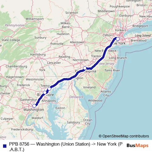 Click here to view the nearest PPB 8756 - Washington (Union Station) -> New York (P.A.B.T.) bus stop.