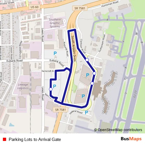 Parking Lots to Arrival Gate bus Route Map