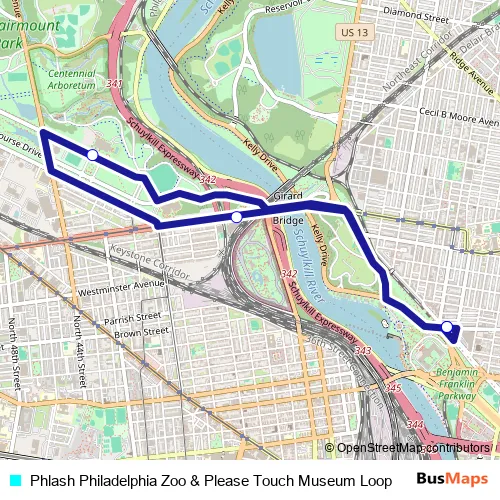 Phlash Philadelphia Zoo & Please Touch Museum Loop bus Route Map
