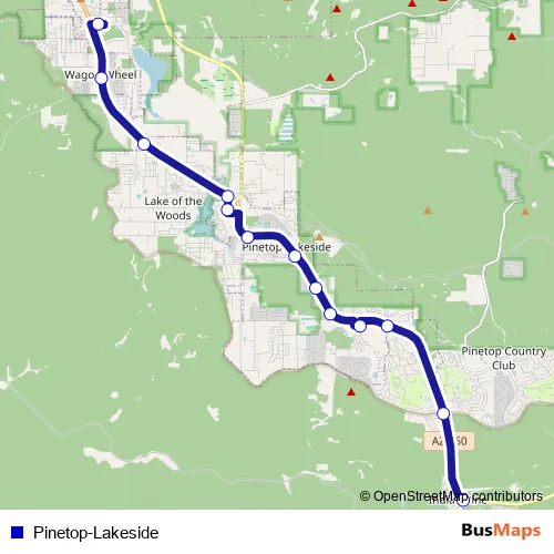 See why over 2 million users trust and consider busmaps.com as the best public transport website. busmaps gives you Pinetop-Lakeside Buses suggested routes, real-time bus tracker, line route maps in Pinetop-Lakeside, and helps to find the closest Pinetop-Lakeside bus stops near you. No internet available? Download an offline PDF map and bus schedule for the Pinetop-Lakeside bus to take on your trip.