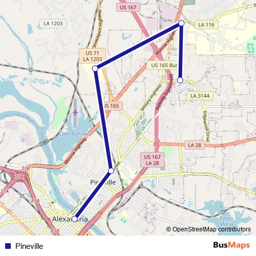 See why over 2 million users trust and consider busmaps.com as the best public transport website. busmaps gives you Alexandria Buses suggested routes, real-time bus tracker, line route maps in Alexandria, and helps to find the closest Pineville bus stops near you. No internet available? Download an offline PDF map and bus schedule for the Pineville bus to take on your trip.