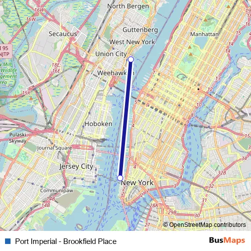 Port Imperial - Brookfield Place ferry Route Map