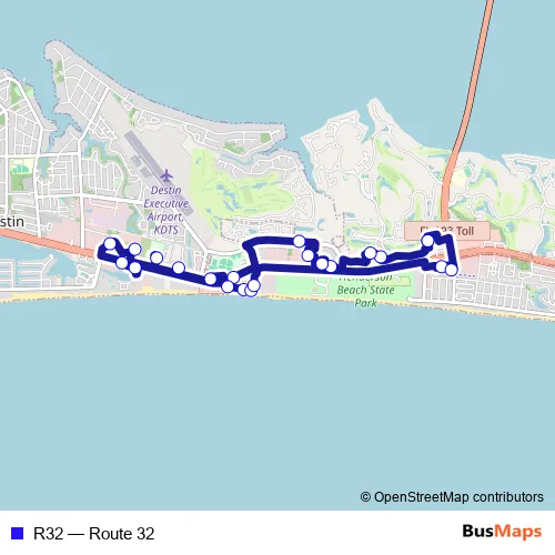 See why over 2 million users trust and consider busmaps.com as the best public transport website. busmaps gives you Destin Buses suggested routes, real-time bus tracker, line route maps in Destin, and helps to find the closest R32 bus stops near you. No internet available? Download an offline PDF map and bus schedule for the R32 bus to take on your trip.