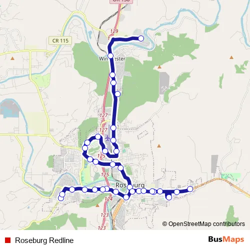 Additional information: Roseburg Redline has 35 stops and the total trip duration for this route is approximately 52 minutes.
