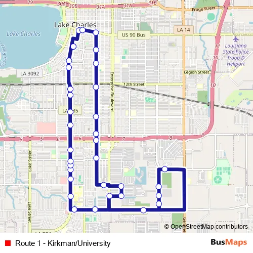 Route 1 - Kirkman/University (Lake Charles Buses)