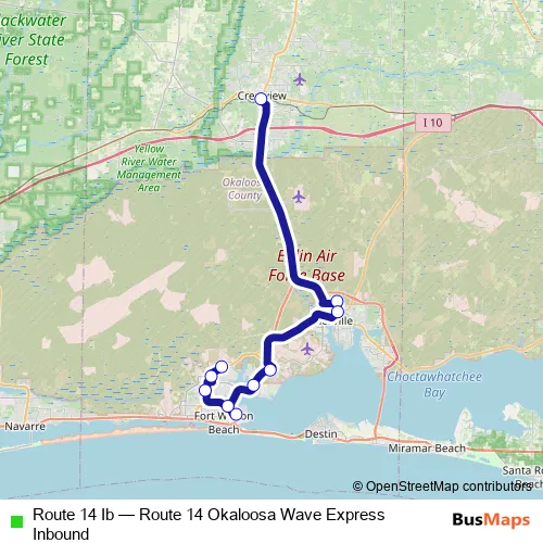 Click here to view the nearest Route 14 Ib - Route 14 Okaloosa Wave Express Inbound bus stop.