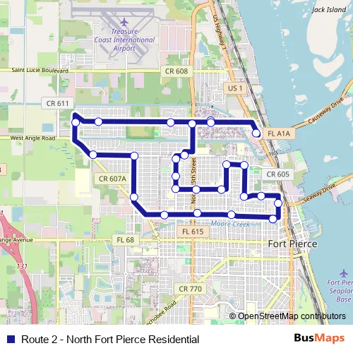See why over 2 million users trust and consider busmaps.com as the best public transport website. busmaps gives you Fort Pierce Buses suggested routes, real-time bus tracker, line route maps in Fort Pierce, and helps to find the closest Route 2 - North Fort Pierce Residential bus stops near you. No internet available? Download an offline PDF map and bus schedule for the Route 2 - North Fort Pierce Residential bus to take on your trip.