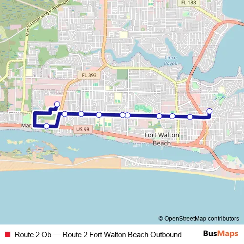 Click here to view the nearest Route 2 Ob - Route 2 Fort Walton Beach Outbound bus stop.