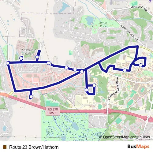 Bus Route 23 Brown/Hathorn in Oxford: Stops & Timetable