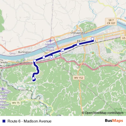 Route 6 - Madison Avenue bus Route Map