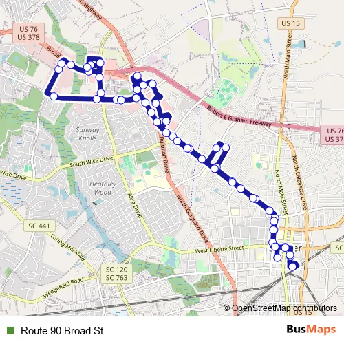 See why over 2 million users trust and consider busmaps.com as the best public transport website. busmaps gives you Sumter Buses suggested routes, real-time bus tracker, line route maps in Sumter, and helps to find the closest Route 90 Broad St bus stops near you. No internet available? Download an offline PDF map and bus schedule for the Route 90 Broad St bus to take on your trip.