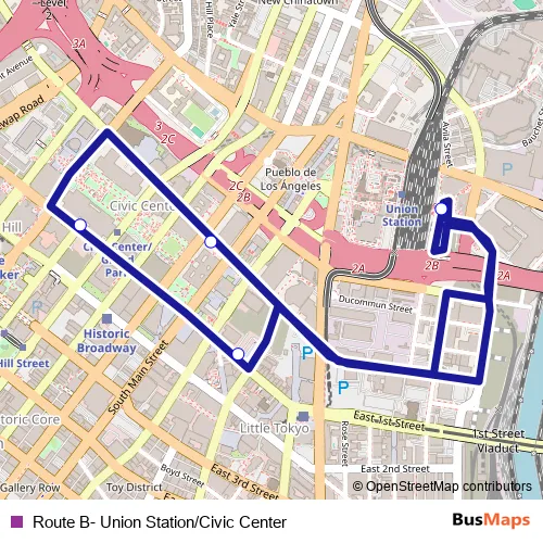See why over 2 million users trust and consider busmaps.com as the best public transport website. busmaps gives you Los Angeles Buses suggested routes, real-time bus tracker, line route maps in Los Angeles, and helps to find the closest Route B- Union Station/Civic Center bus stops near you. No internet available? Download an offline PDF map and bus schedule for the Route B- Union Station/Civic Center bus to take on your trip.