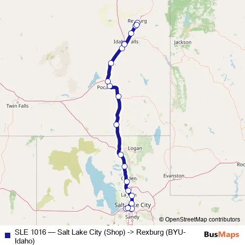 Click here to view the nearest SLE 1016 - Salt Lake City (Shop) -> Rexburg (BYU-Idaho) bus stop.