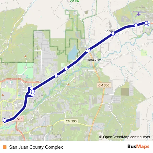 Additional information: San Juan County Complex has 16 stops and the total trip duration for this route is approximately 50 minutes.