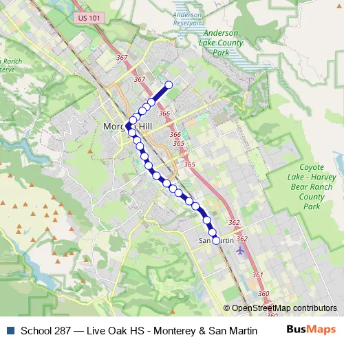 Bus School 287 - Live Oak HS - Monterey & San Martin Schedule in Morgan Hill