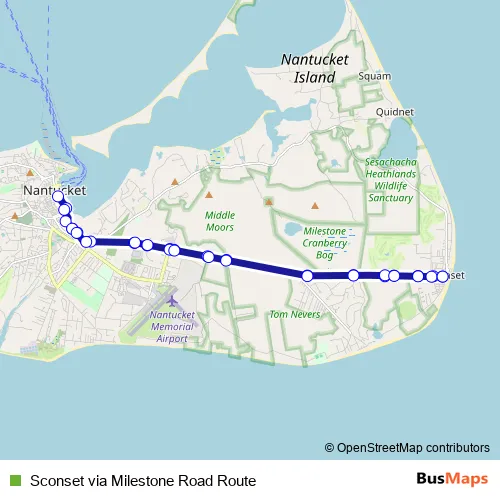 Additional information: Sconset via Milestone Road Route has 36 stops and the total trip duration